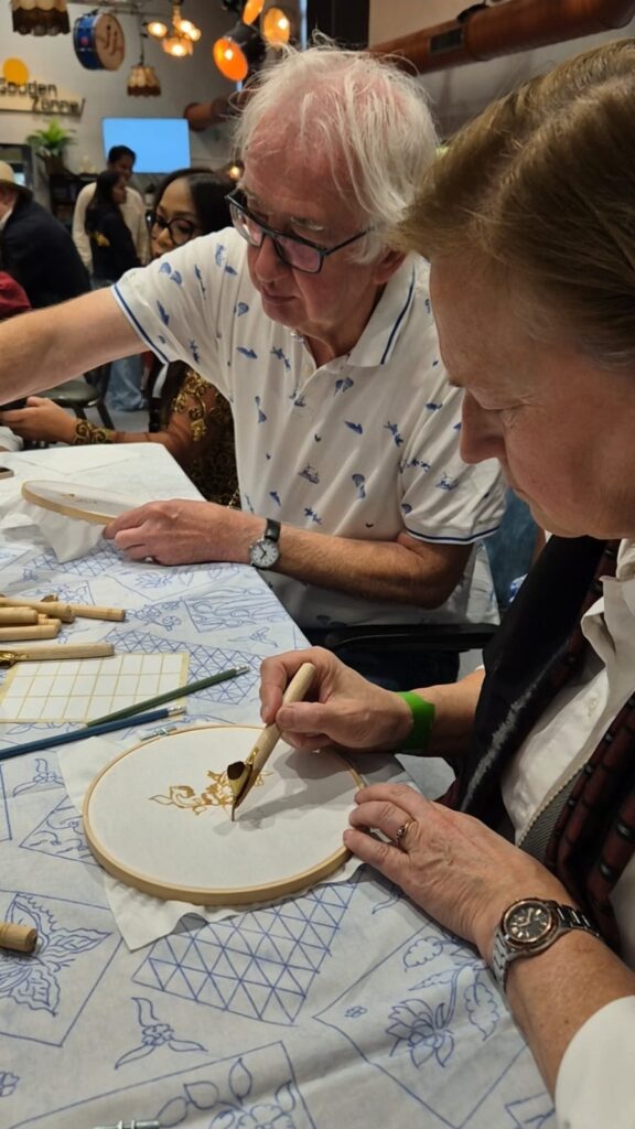 “Kami ingin meyakinkan semua peserta dapat merasakan pengalaman langsung berinteraksi dengan budaya Indonesia. Syukur alhamdulilah, ternyata minat yang hadir melebihi ekspektasi kami. Untungnya kami siap dengan peralatan extra seperti canting dan kain untuk membatik,” sambungnya.