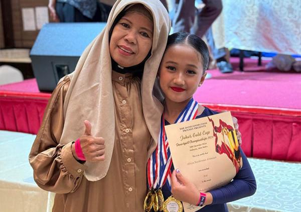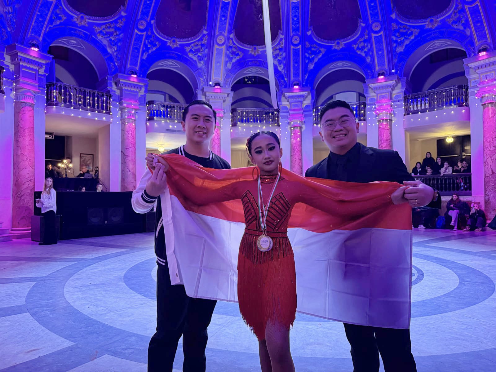 Tak tanggung-tanggung, ia memborong medali di sejumlah nomor lomba, baik di kategori Teacher & Student (U16) maupun Solo Ballroom Dance.