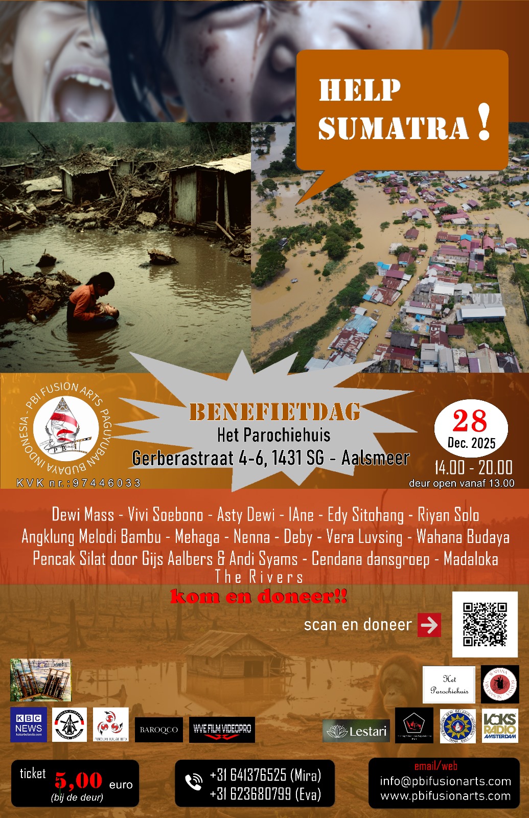 Aalsmeer, Belanda, Wartaeropa.com — Solidaritas diaspora Indonesia di Eropa kembali ditunjukkan melalui aksi nyata. Paguyuban Budaya Indonesia (PBI) Fusion Arts di Belanda akan menggelar acara penggalangan dana bertajuk “Benefietdag – Help Sumatra 2025!” guna membantu para korban banjir besar yang melanda sejumlah wilayah di Sumatra pada akhir November 2025.